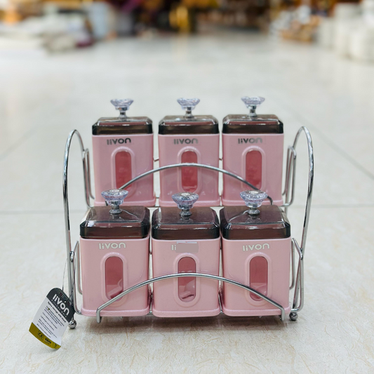 Livon Spice Jar Set 6-Pcs with Steel Stand – 3 Colors
