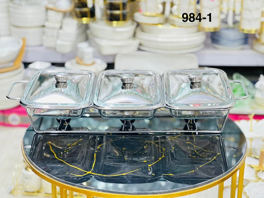 گلاس ڈش بوفے سیٹ 3 x 1.5L کے ساتھ فوڈ گرم - ابھی خریدیں۔