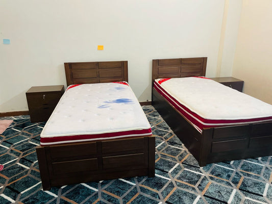 ٹوئن بیڈ سیٹ - ویرو رسی ڈیزائن کے ساتھ ٹھوس لکڑی کا فریم