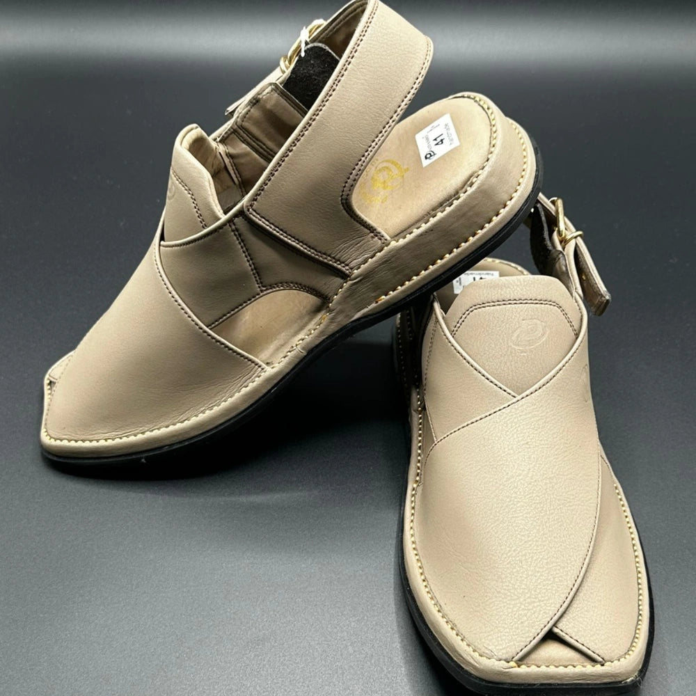 Elevate your style with Paidasho Peshawari Shoes in elegant beige leather. Expertly handcrafted by skilled artisans, these sandals blend traditional design with modern comfort. The cushioned insole ensures all-day ease, while the sturdy black sole delivers durability and grip. Ideal for weddings, festive occasions, or daily wear, these shoes highlight cultural heritage with a touch of sophistication.